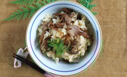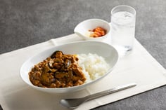 地元 天竜の原木乾燥椎茸と国産舞茸をふんだんに使用しました。野菜や鶏のうまみを溶け込ませ、醤油とニンニクを加えることで、きのこの風味をカレーに調和させた逸品です。